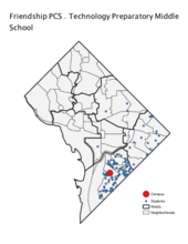 Friendship PCS Technology Preparatory Academy Middle Student Location Map