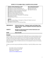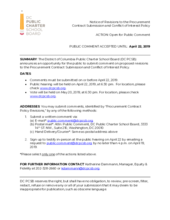 The District of Columbia Public Charter School Board (DC PCSB) announces an opportunity for the public to submit comment on proposed revisions to the Procurement Contract Submission and Conflict of Interest Policy.